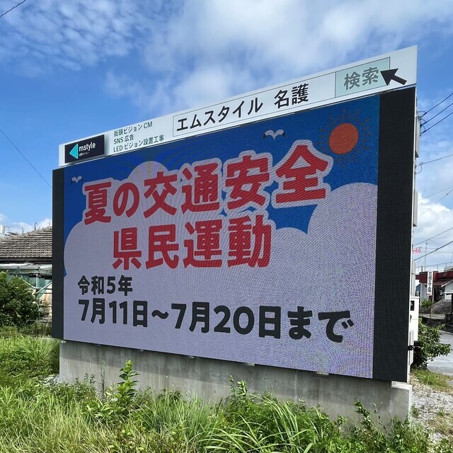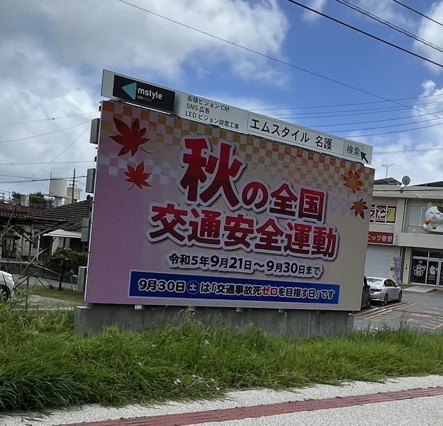 弊社LEDビジョンにて放映中です°˖✧沖縄県・沖縄県安全推進協議会より交通事故防止の徹底を図ることを目...