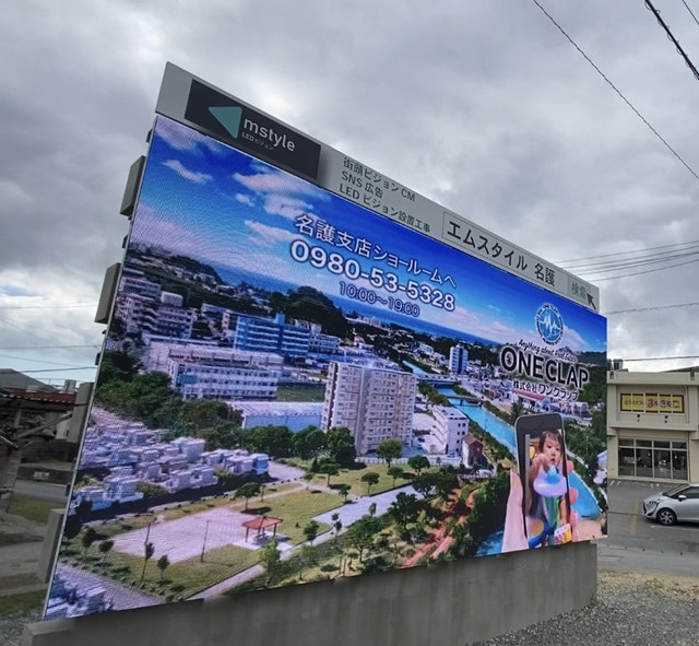 弊社LEDビジョンにて放映中です°˖✧株式会社ワンクラップ 名護ショールーム 様名護市に堂々完成✨===...